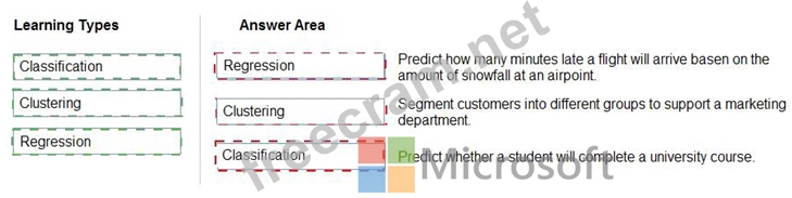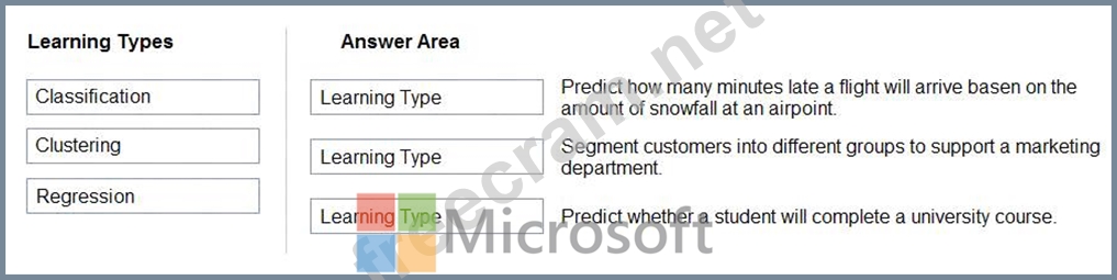 To answer, drag the appropriate machine learning type from the column on the left to its scenario on the right.