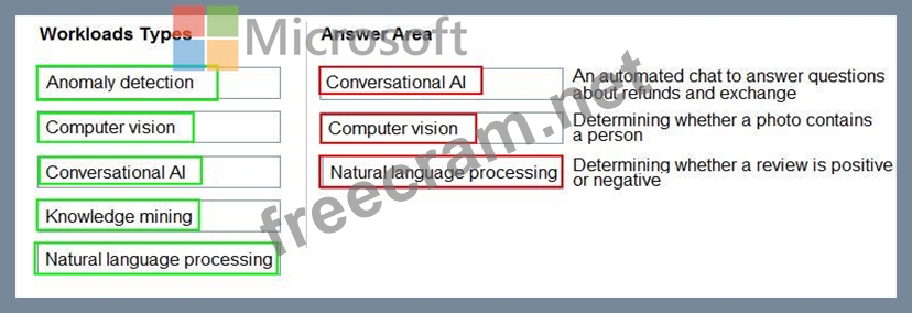 Question 4: Match the types of AI workloads to the appropriate scenarios...