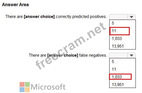 False Negative means where true value was 1 but predicted value was 0 and that is 1033 in this case The confusion matrix shows cases where both the predicted and actual values were 1 (known as true positives) at the top left, and cases where both the predicted and the actual values were 0 (true negatives) at the bottom right. The other cells show cases where the predicted and actual values differ (false positives and false negatives).