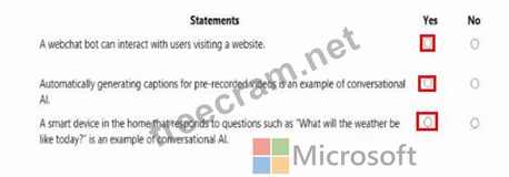 For each of the following statements, select Yes if the statement is true. Otherwise, select No.