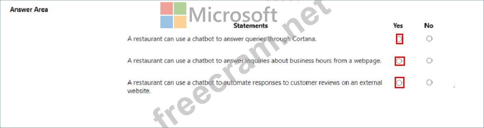 For each of the following statements, select Yes if the statement is true. Otherwise, select No.
