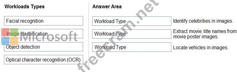 Question 72: Match the types of AI workloads to the appropriate scenarios...