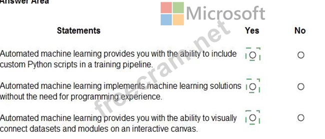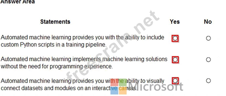 For each of the following statements, select Yes if the statement is true. Otherwise, select No.