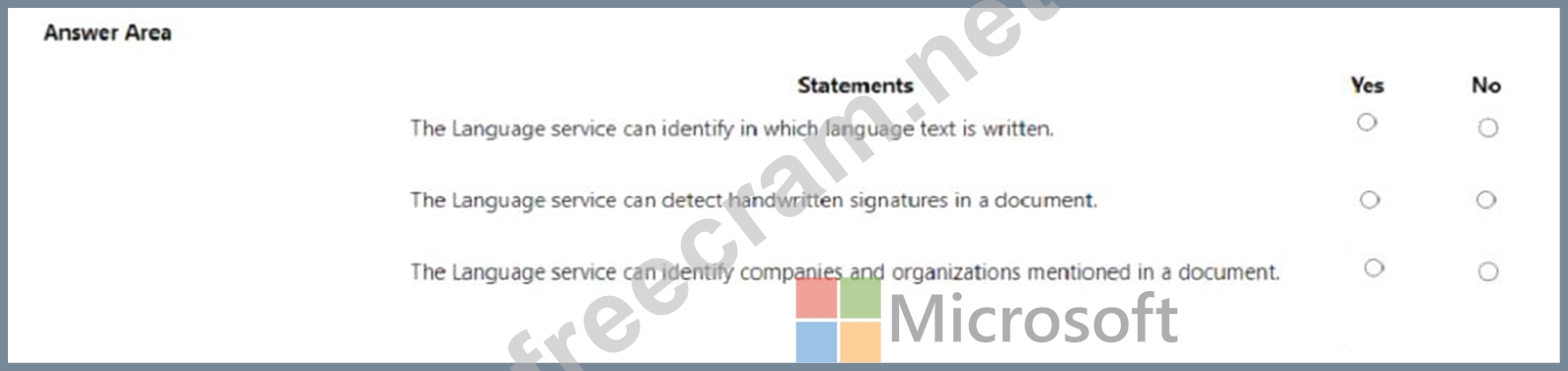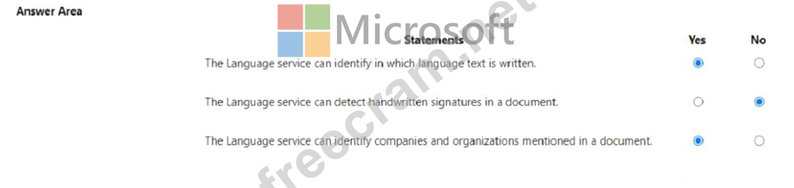 For each of the following statements, select Yes if the statement is true. Otherwise, select No.