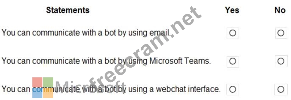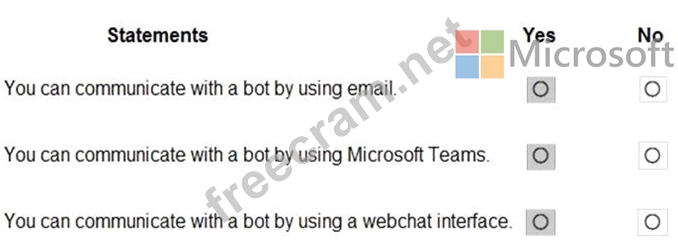For each of the following statements, select Yes if the statement is true. Otherwise, select No.