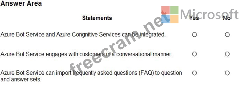 For each of the following statements, select Yes if the statement is true. Otherwise, select No.