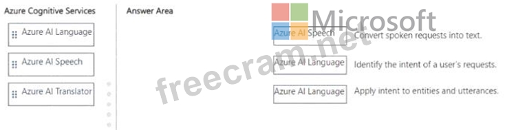 Question 119: Match the Azure Al service to the appropriate actions. To an...