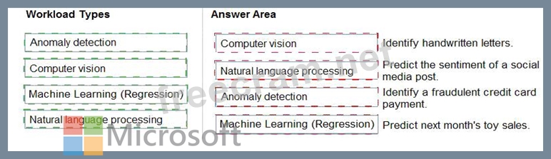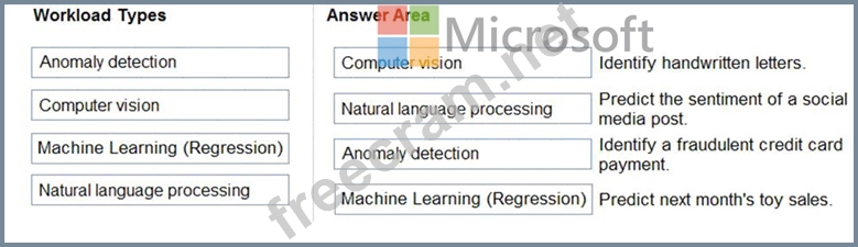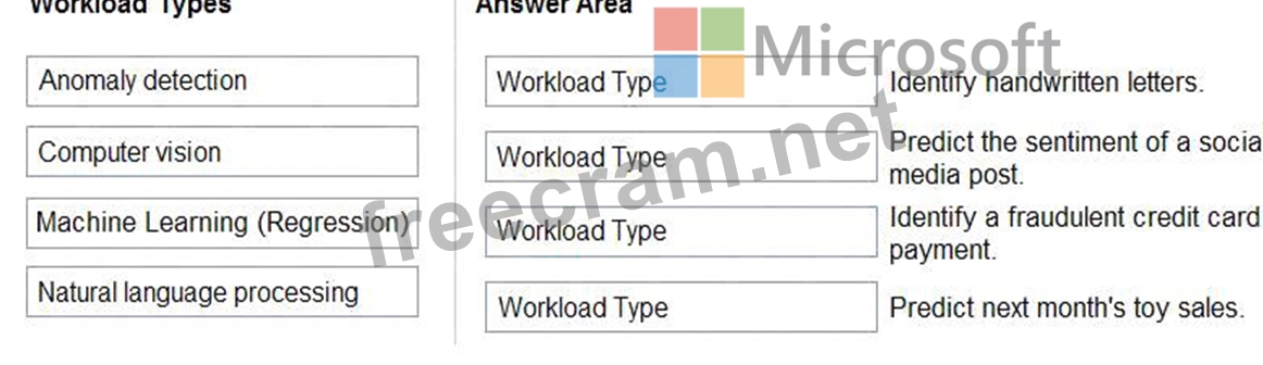 Question 113: Match the types of AI workloads to the appropriate scenarios...