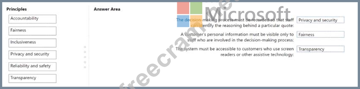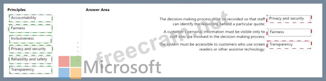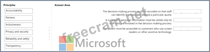 Match the Microsoft responsible Al principles to the appropriate requirements.