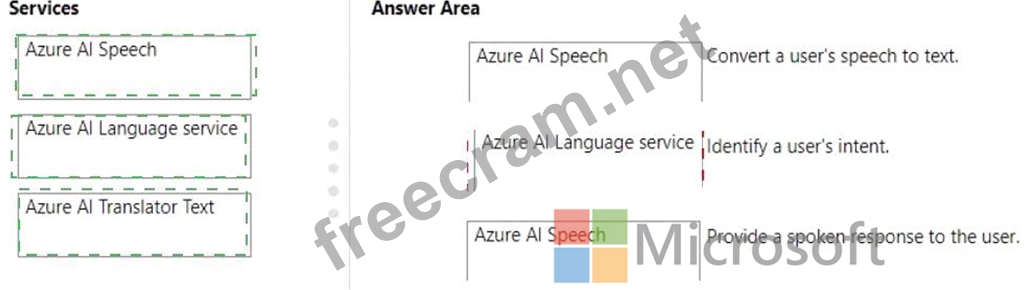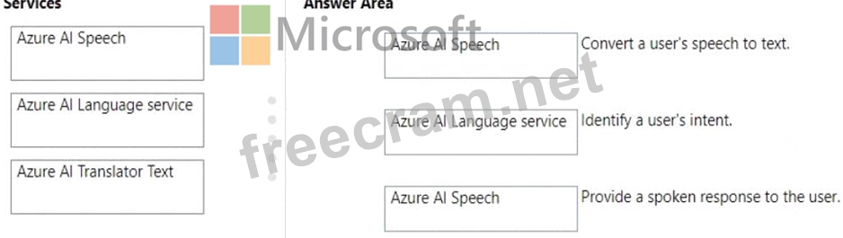 Question 119: Match the Azure Al service to the appropriate actions. To an...