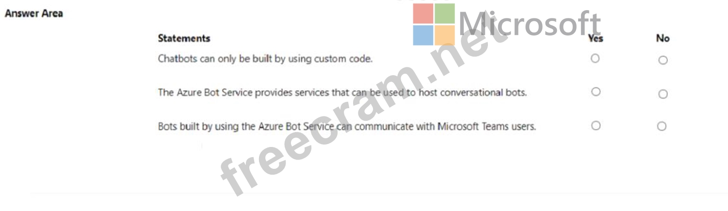 For each of the following statements, select Yes if the statement is true. Otherwise, select No.