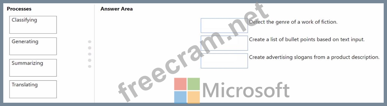 To answer, drag the appropriate process from the column on the left to its task on the right. Each process may be used once, more than once, or not at all.
