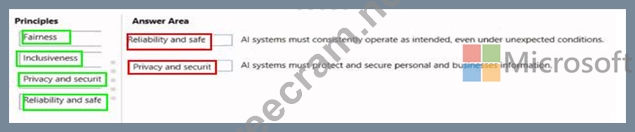 Question 45: Match the Microsoft guiding principles for responsible AI to...
