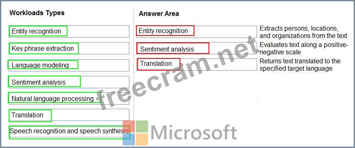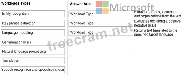 Question 99: Match the Azure Cognitive Services to the appropriate Al wor...