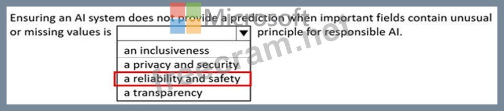 Question 45: Match the Microsoft guiding principles for responsible AI to...