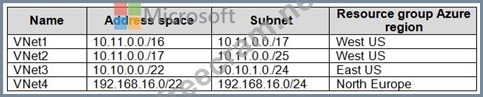 Explanation/Reference: References: https://docs.microsoft.com/en-us/azure/virtual-network/tutorial-connect-virtual-networks-portal