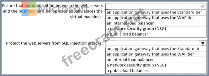 You plan to deploy a multi-tiered application that will contain the tiers shown in the following table.
