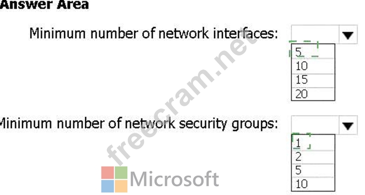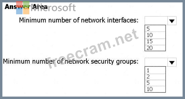 What is the minimum number of network interfaces and network security groups that you require? To answer, select the appropriate options in the answer area.