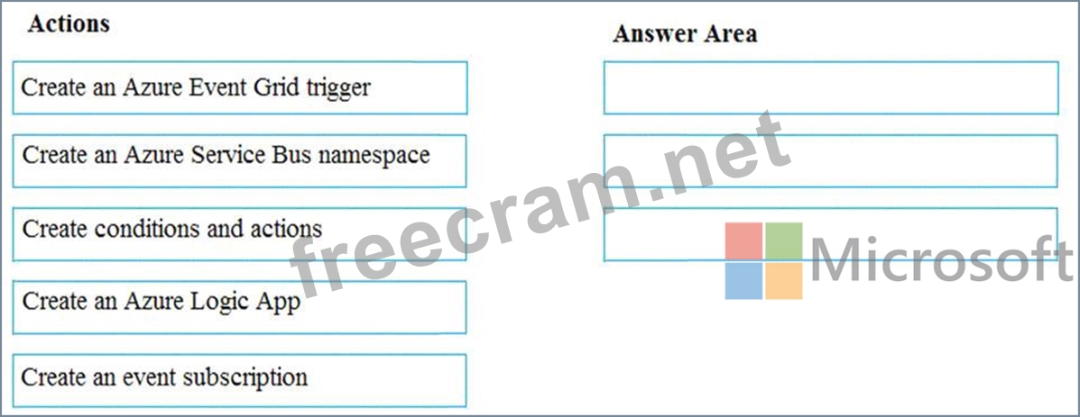 Which three actions should you perform in sequence? To answer, move the appropriate actions from the list of actions to the answer area and arrange them in the correct order.