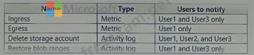 You plan to monitor storage1 and to configure email notifications for the signals shown in the following table.