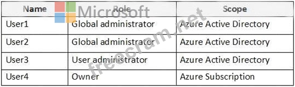 You have an Azure subscription that contains the following users in an Azure Active Directory tenant named contoso.onmicrosoft.com: