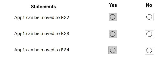 App1 present in RG1 and in RG1 there is no lock available. So you can move App1 to other resource groups, RG2, RG3, RG4.