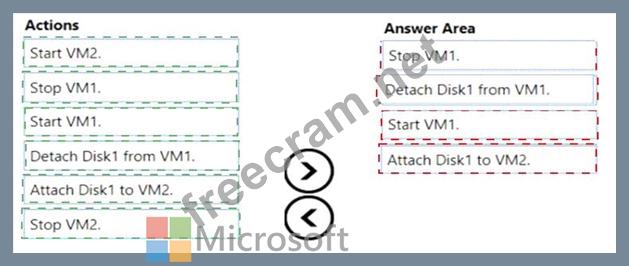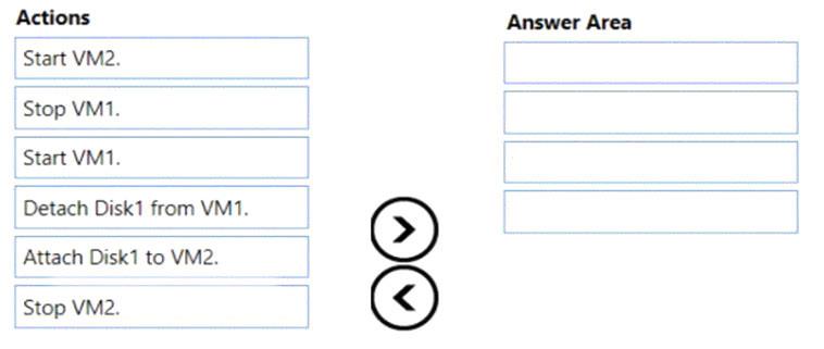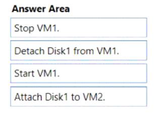 You have two Azure virtual machines named VM1 and VM2. VM1 has a single data disk named Disk1. You need to attach Disk1 to VM2. The solution must minimize downtime for both virtual machines.