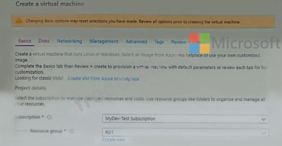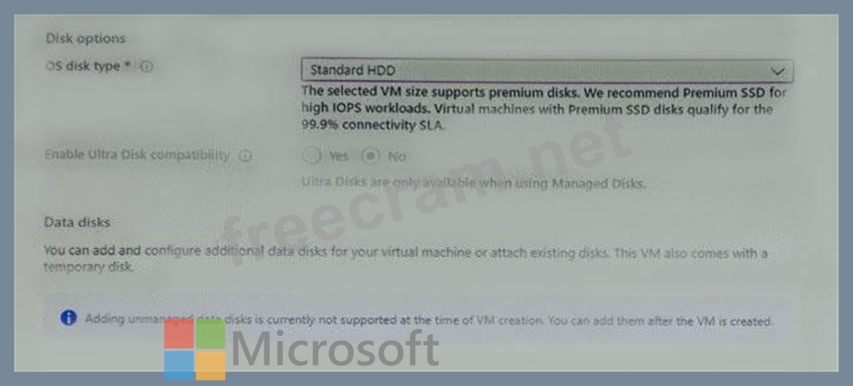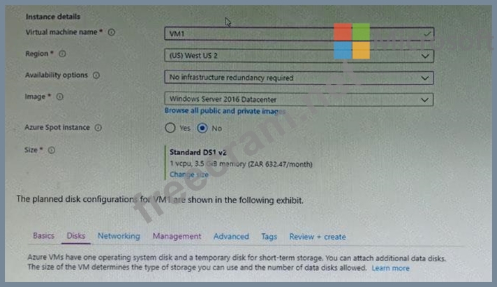 You plan to create an Azure virtual machine named VM1 that will be configured as shown in the following exhibit.