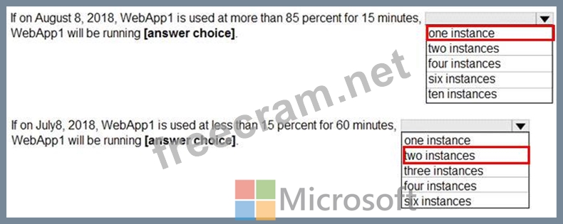 Refer to scaling condition provided in the question, August 8, 2018 is outside the schedule of the scale condition 1, and Default instance count is 1.