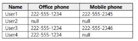 You have an Azure Active Directory (Azure AD) tenant named contoso.com that is synced to an Active Directory domain. The tenant contains the users shown in the following table.