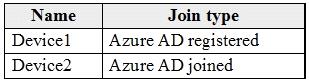 Azure AD joined or hybrid Azure AD joined devices utilize an organizational account in Azure AD Box 2: No User2 is a User Administrator.