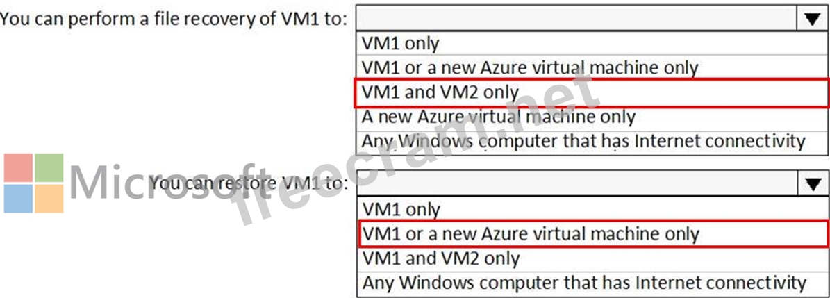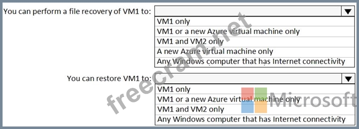 VM1 is backed up daily by Azure Backup without using the Azure Backup agent.