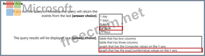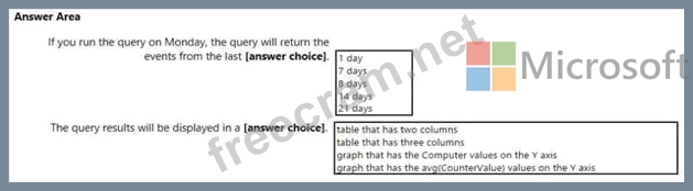 You have an Azure subscription that contains several virtual machines and an Azure Log Analytics workspace named Workspace1. You create a log search query as shown in the following exhibit.