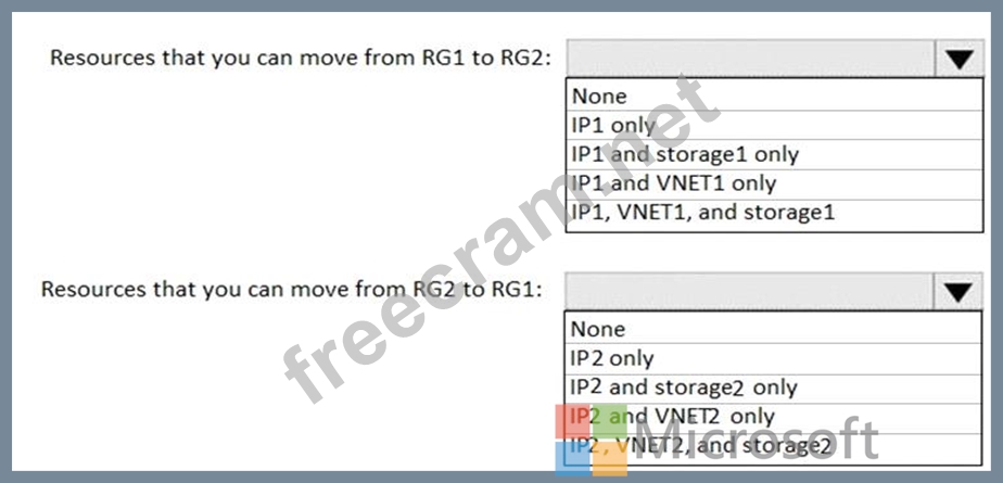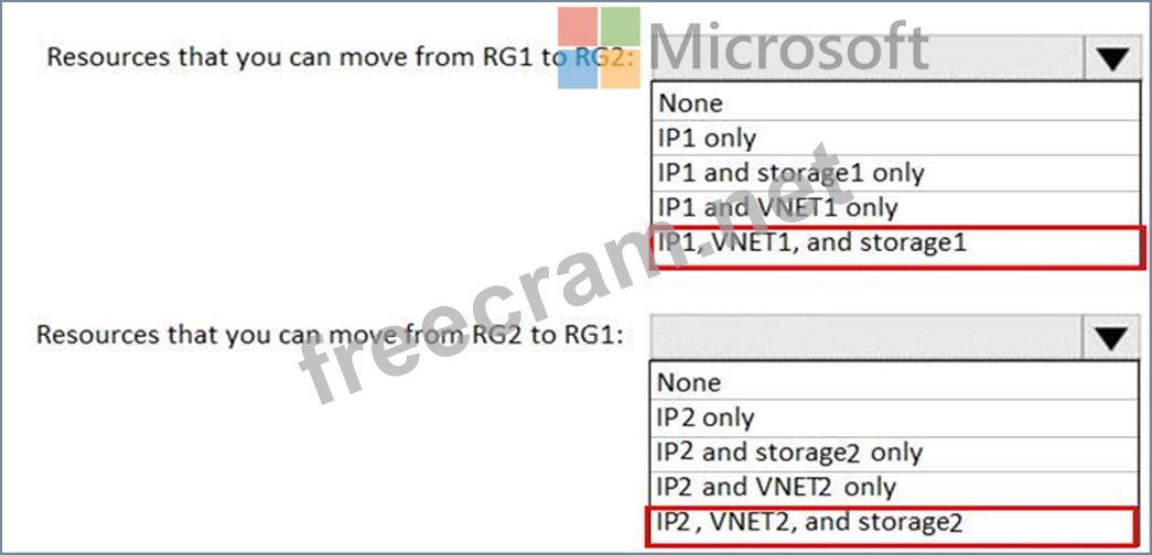 RG1 --> RG2 = IP1, vnet1 and storage1