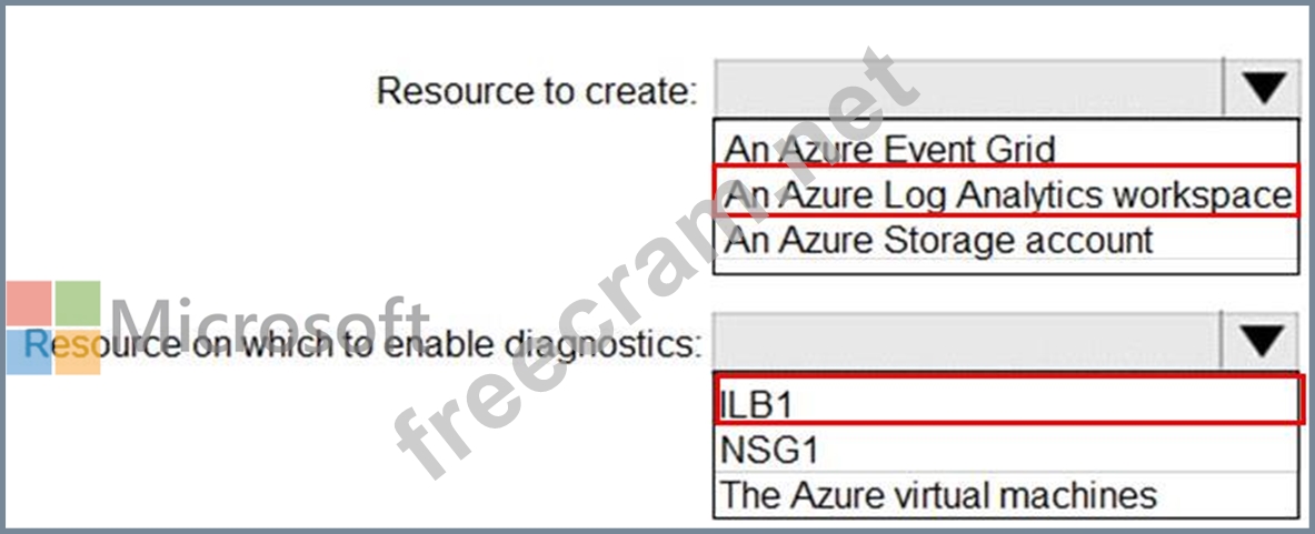 In the Azure portal you can set up a Log Analytics workspace, which is a unique Log Analytics environment with its own data repository, data sources, and solutions Box 2: ILB1 References: