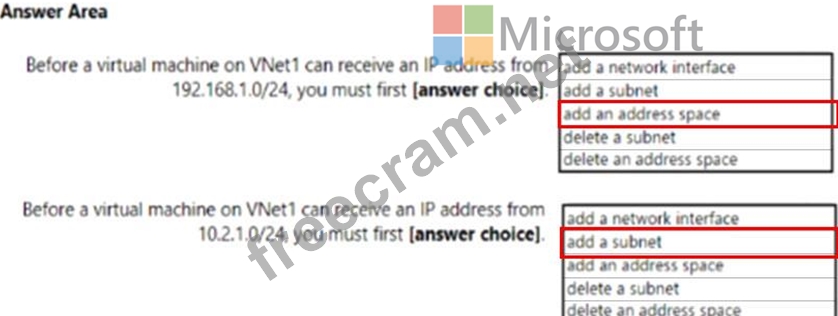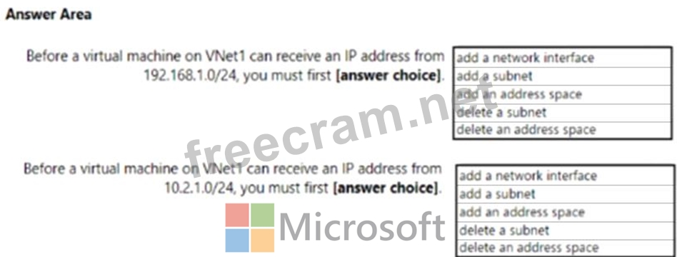 You have a virtual network named VNet1 that has the configuration shown in the following exhibit.