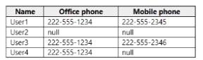 Solution: You add an office phone number for User2.