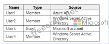 You have an Azure Active Directory (Azure AD) tenant named contoso.com that is synced to an Active Directory domain. The tenant contains the users shown in the following table.
