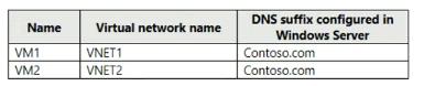 You discover that VM1 can resolve names in contoso.com but cannot resolve names in adatum.com. VM1 can resolve other hosts on the internet.