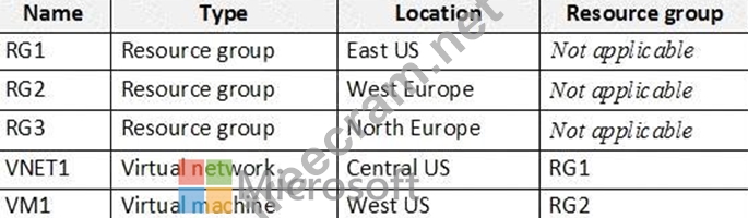 You have an Azure subscription named Subscription1 that contains the resources shown in the following table.