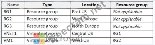 You have an Azure subscription named Subscription1 that contains the resources shown in the following table.