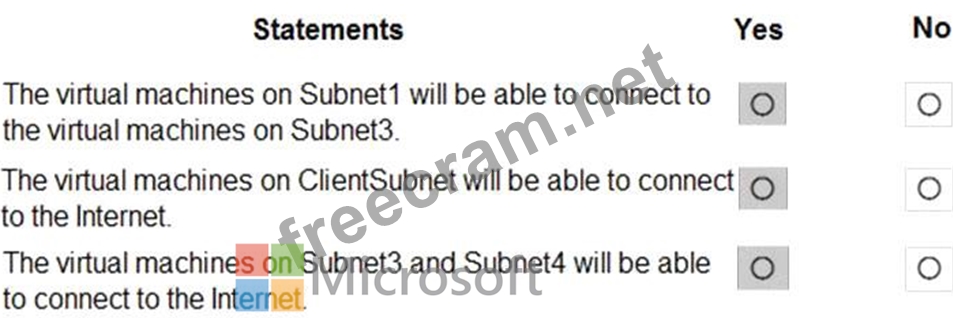 For each of the following statements, select Yes if the statement is true. Otherwise, select No.