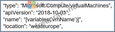 You have an Azure Resource Manager template named Template1 that is used to deploy an Azure virtual machine.