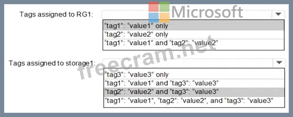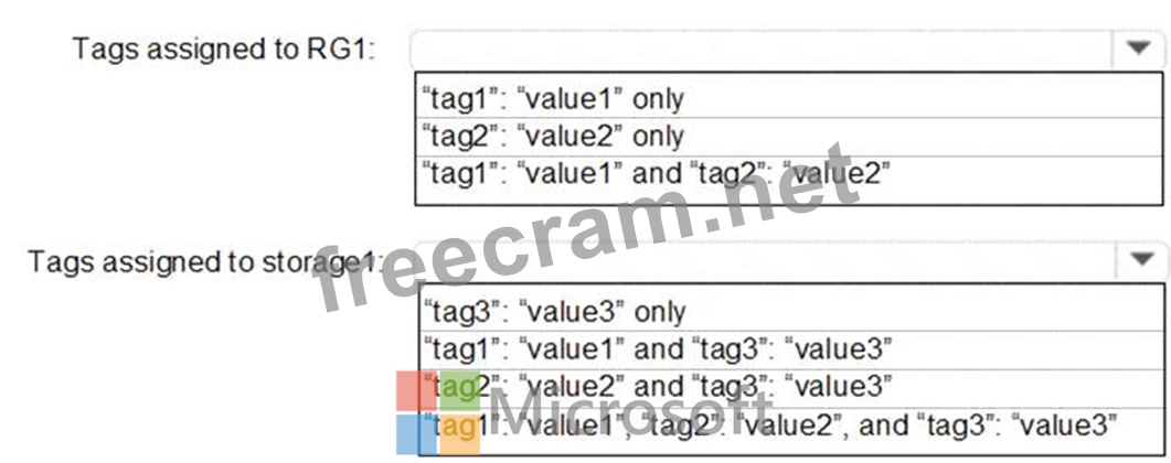 After Policy1 is assigned, you create a storage account that has the following configurations:
