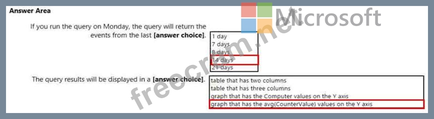 You have an Azure subscription that contains several virtual machines and an Azure Log Analytics workspace named Workspace1. You create a log search query as shown in the following exhibit.