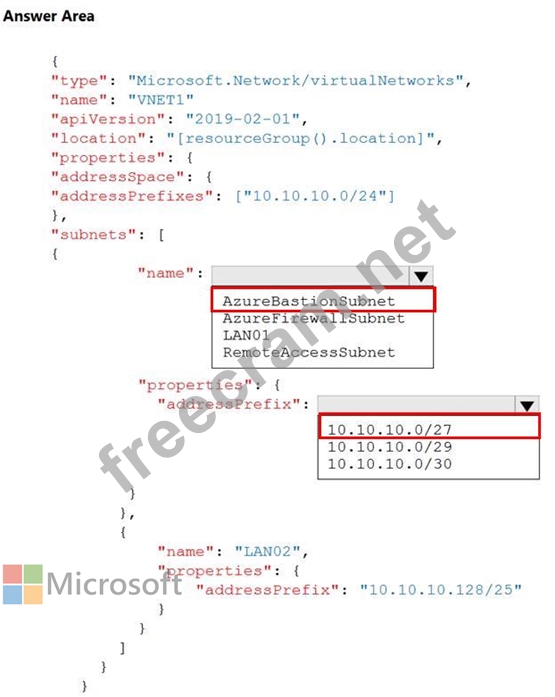 You plan to use an Azure Resource Manager template to deploy a virtual network named VNET1 that will use Azure Bastion.