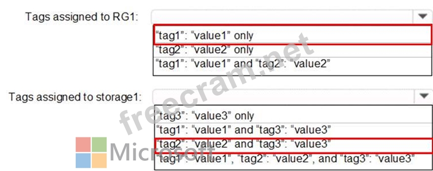 After Policy1 is assigned, you create a storage account that has the following configurations: