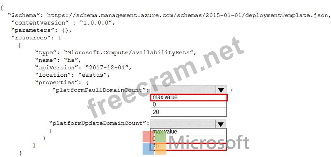 You plan to use Azure Resource Manager templates to deploy 50 Azure virtual machines that will be part of the same availability set.