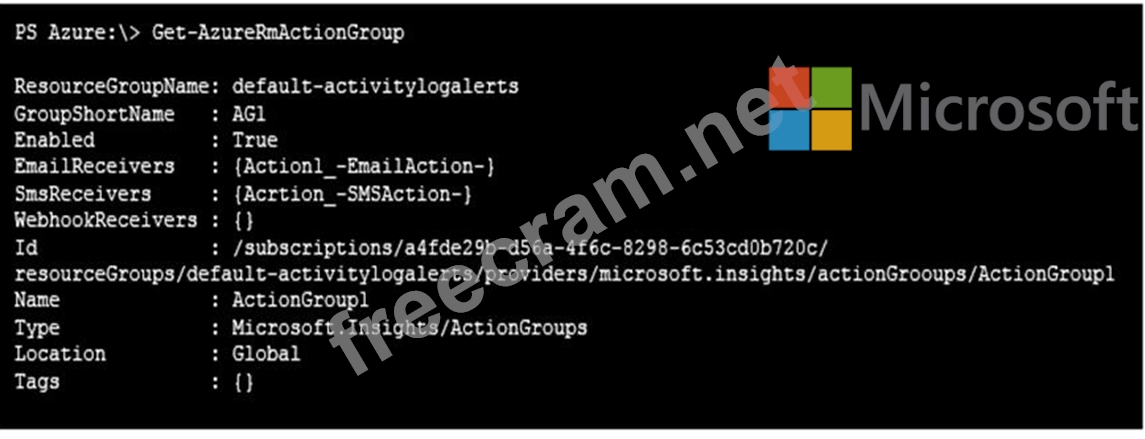 The Alert1 action group is configured as shown in the following exhibit.