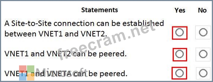 For each of the following statements, select Yes if the statement is true. Otherwise, select No.